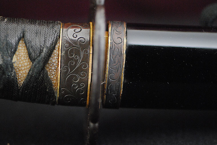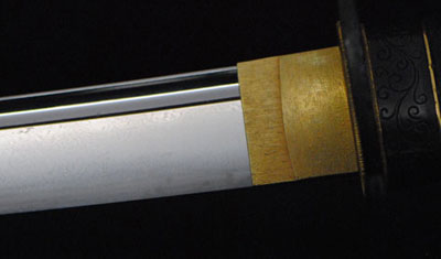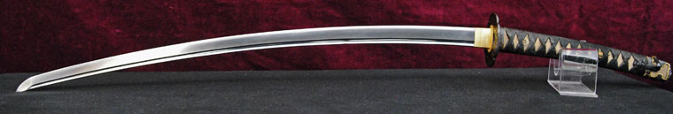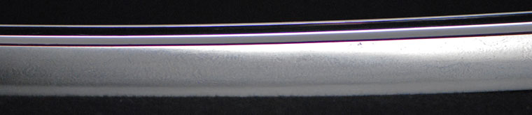 The swords of the Chikuzen Kongobyoei School are robust and give off an aura of power, long, thick with Funbari, Koshisori and Ko-Kissaki. Jitetsu and Hada are in Mokume with O-Hada mixed in showing a very prominent pattern. Others are a mixture of Itame and Mokume.