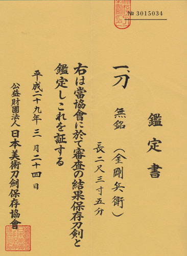 It is said that The Kongobyoei School was formed or founded by a Bizen Smith whose name was Takatsuna who apparently moved to the mountains of Chikuzen Province and settled there to teach the warrior monks the art of sword making.